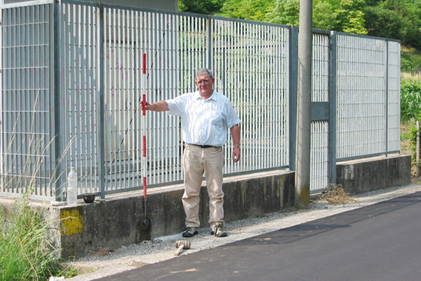 (CSO) - Bullone IGM infisso nel cordolo della recinzione, lato strada, in corrispondenza dello spigolo sinistro.