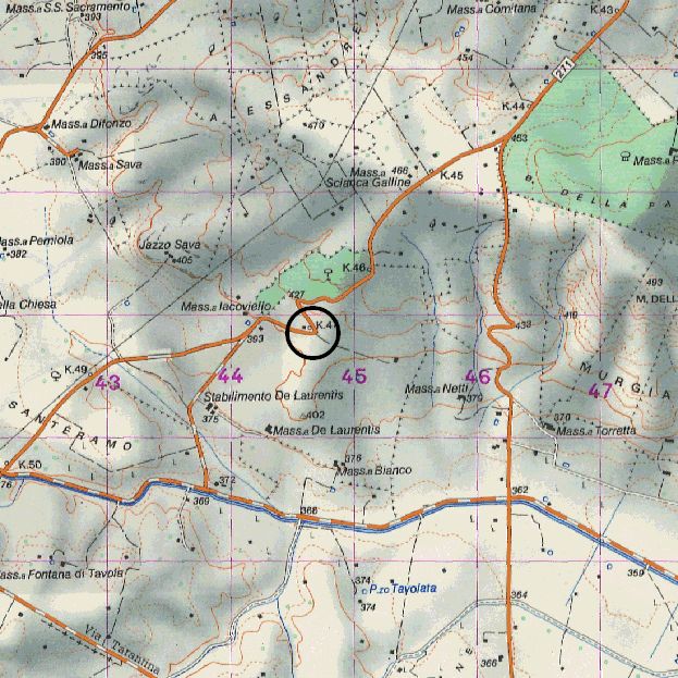 | Prima di acquistare questo punto IGM95 si consiglia di scaricare la scheda della monografia presente in questa pagina, per verificare, con un sopralluogo, il buon stato di conservazione della materializzazione (a volte danneggiata da ristrutturazioni edili, stradali, eventi naturali, vandalismi ecc) |