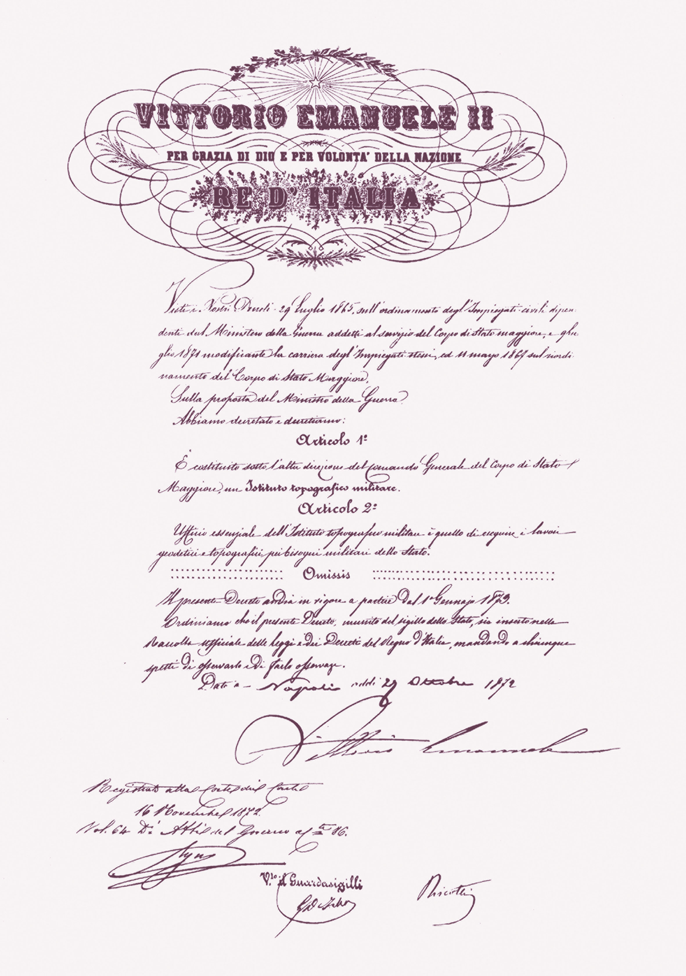 Il regio decreto che istituisce l'Istituto Geografico Militare